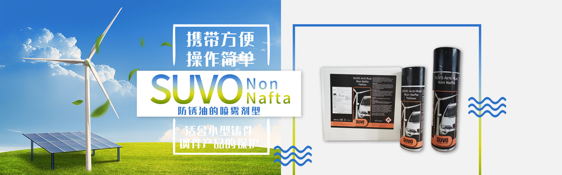 SUVO Non Nafta 是一款無毒、無味、安全、環保的油基/蠟基防銹產品,不含溶劑,內含超強的防腐劑。 涂刷本產品后,會在被保護的工件表面形成一層80-100微米厚的油脂、蠟基保護膜,保護金屬產品免受惡劣環境侵害,遠離腐蝕,遠離生銹。 產品適合于鋼鐵制品在陸地存儲或海上運輸過程中的長期防腐,防銹。本產品非常易于被石油精/煤油清洗劑清除,清洗過程不損傷工件表面,不污染施工環境。